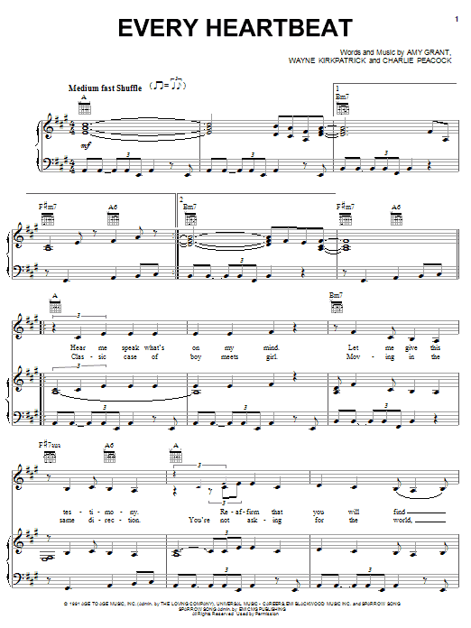 Download or print Amy Grant Every Heartbeat sheet music, chords and digital score arranged for Piano, Vocal & Guitar Chords (Right-Hand Melody). This Christian score includes 5 page(s).