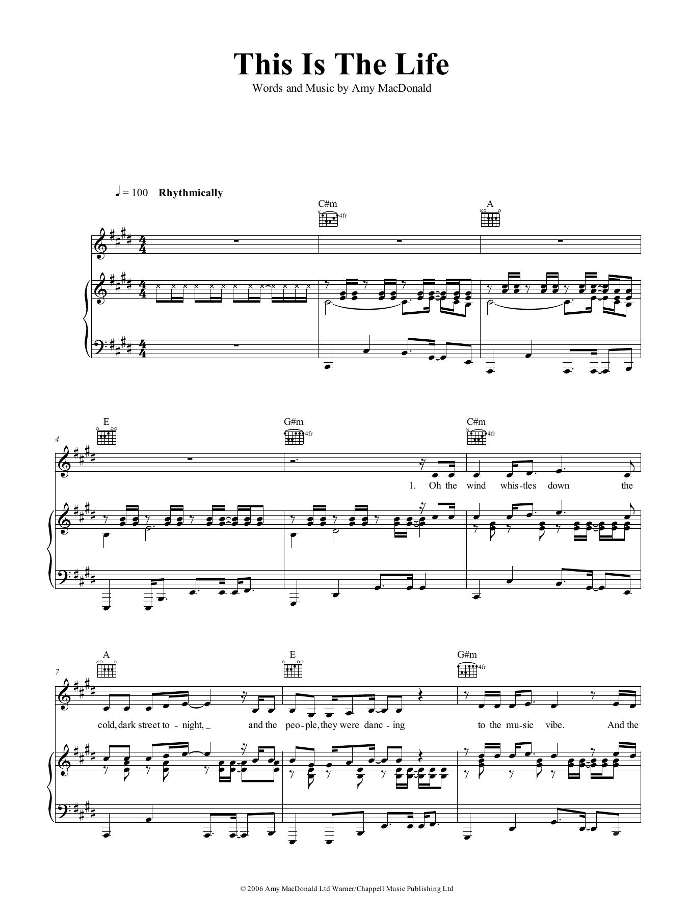 Download or print Amy MacDonald This Is The Life sheet music, chords and digital score arranged for Piano, Vocal & Guitar Chords (Right-Hand Melody). This Pop score includes 6 page(s).