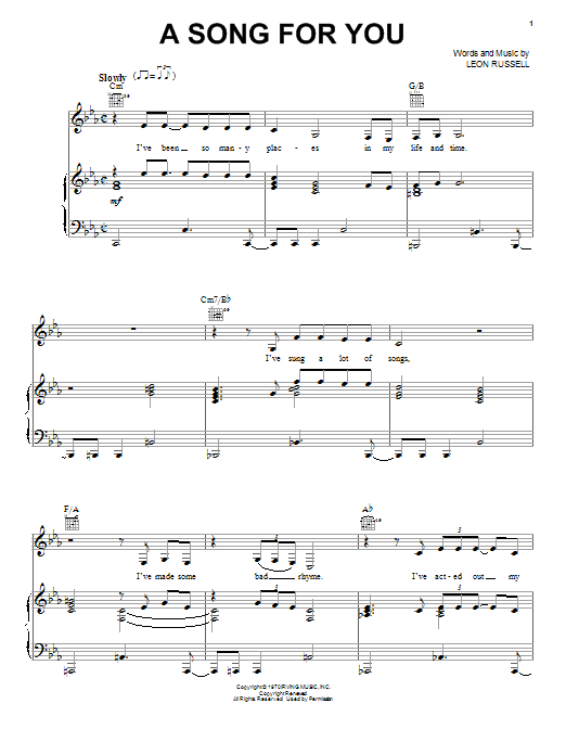 Download or print Amy Winehouse A Song For You sheet music, chords and digital score arranged for Piano, Vocal & Guitar Chords (Right-Hand Melody). This Jazz score includes 8 page(s).