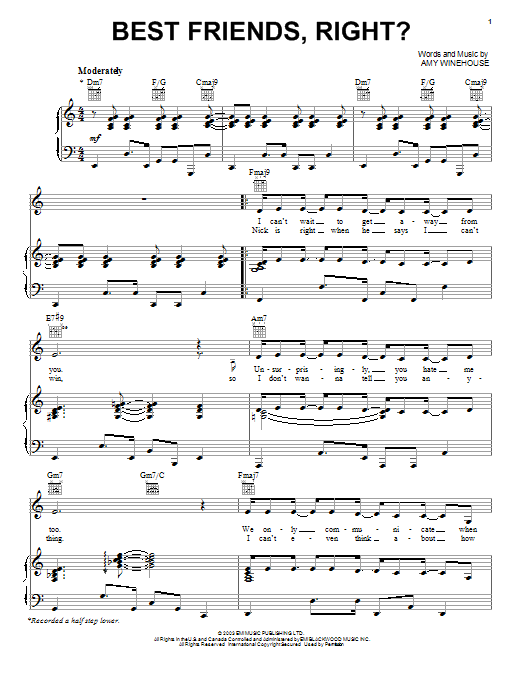 Download or print Amy Winehouse Best Friends, Right? sheet music, chords and digital score arranged for Piano, Vocal & Guitar Chords (Right-Hand Melody). This Pop score includes 5 page(s).