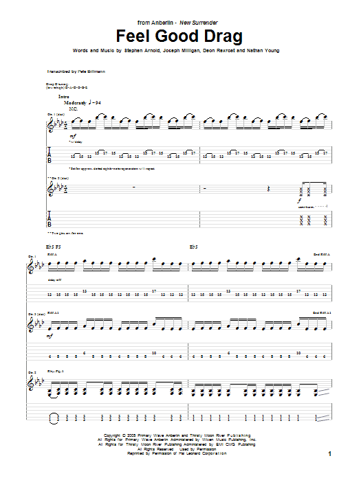 Download or print Anberlin Feel Good Drag sheet music, chords and digital score arranged for Guitar Tab. This Christian score includes 7 page(s).