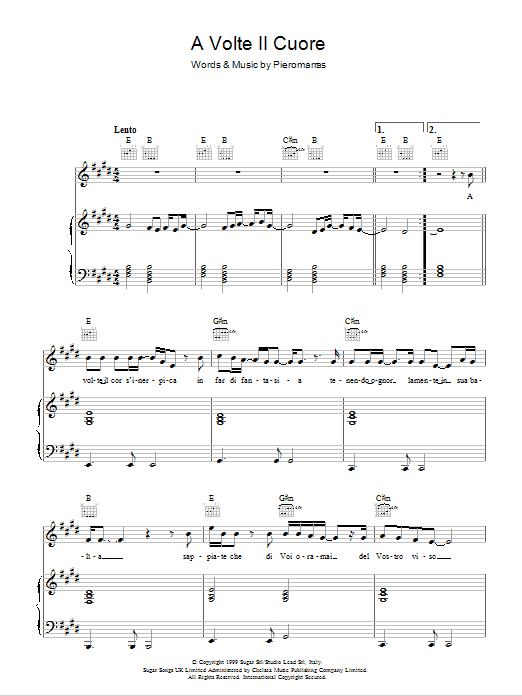 Download or print Andrea Bocelli A Volte Il Cuore sheet music, chords and digital score arranged for Piano, Vocal & Guitar Chords. This Classical score includes 5 page(s).