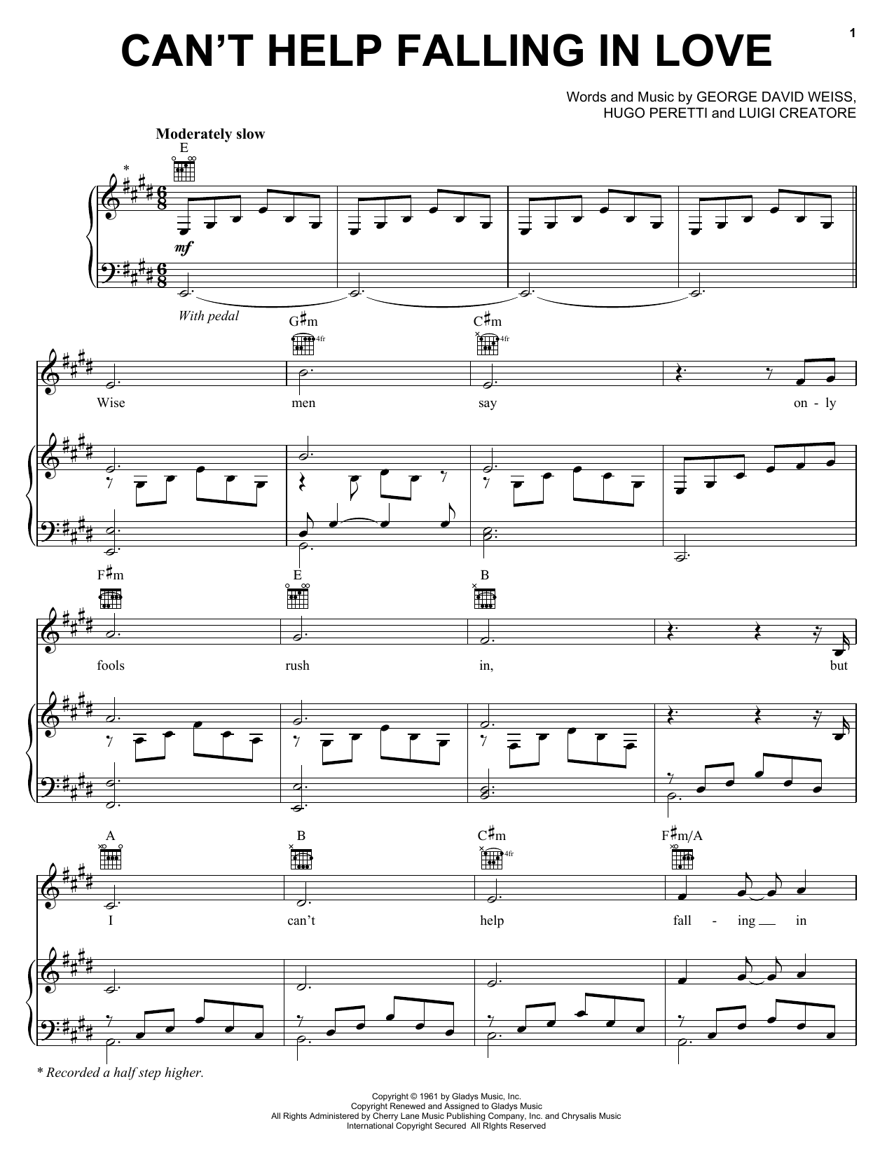 Quick facts Can't Help Falling In Love about digital sheet music