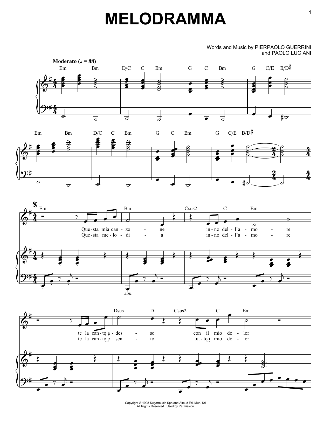 Download or print Andrea Bocelli Melodramma sheet music, chords and digital score arranged for Piano & Vocal. This Classical score includes 4 page(s).