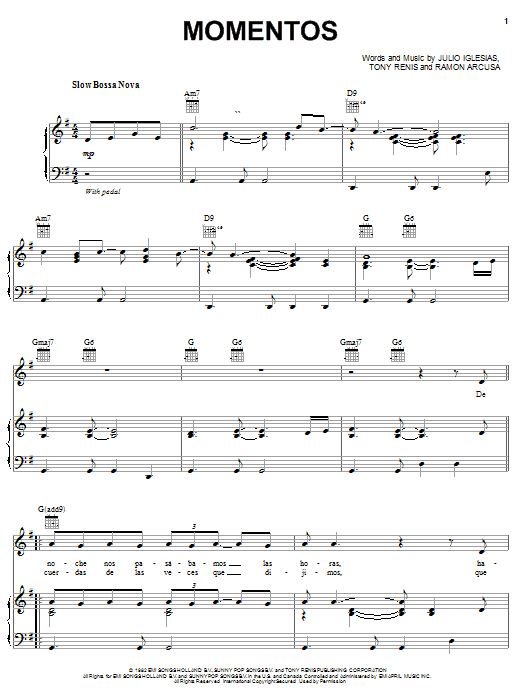Download or print Andrea Bocelli Momentos sheet music, chords and digital score arranged for Piano, Vocal & Guitar Chords (Right-Hand Melody). This Classical score includes 6 page(s).