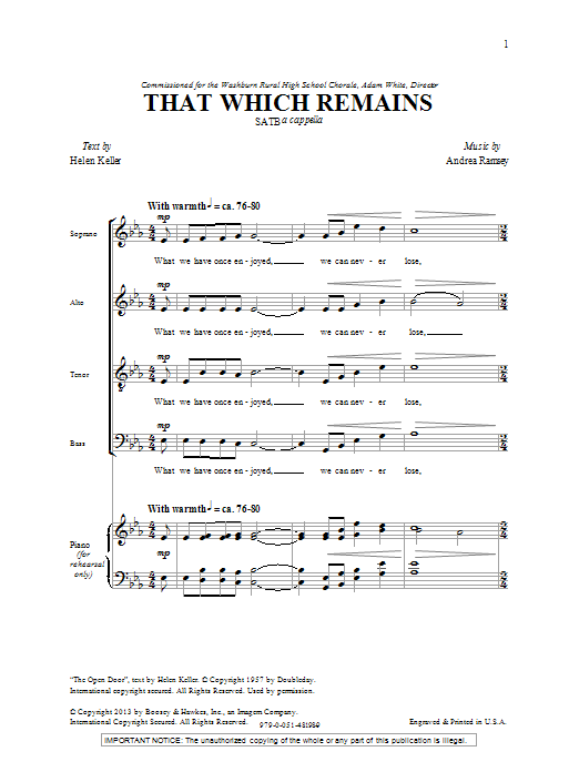 Download or print Andrea Ramsey That Which Remains sheet music, chords and digital score arranged for SATB Choir. This Classical score includes 6 page(s).