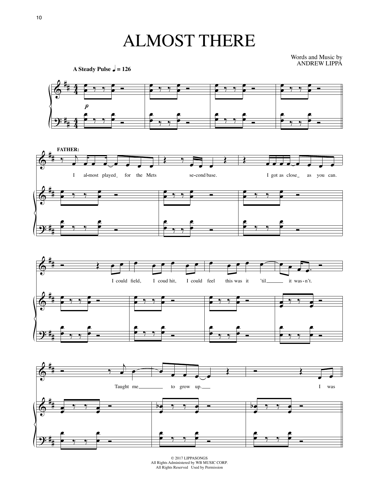 Download or print Andrew Lippa Almost There (from The Man In The Ceiling) sheet music, chords and digital score arranged for Piano & Vocal. This Broadway score includes 6 page(s).