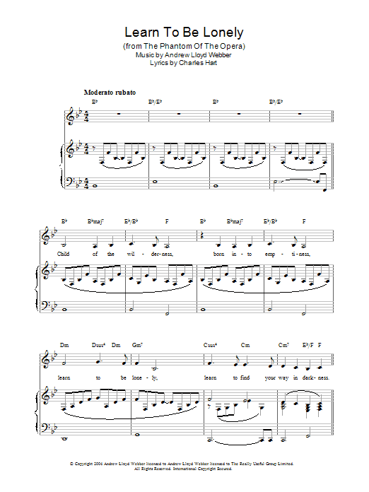 Download or print Andrew Lloyd Webber Learn To Be Lonely sheet music, chords and digital score arranged for Piano Solo. This Film/TV score includes 3 page(s).