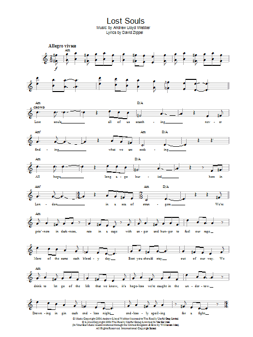 Download or print Andrew Lloyd Webber Lost Souls (from The Woman In White) sheet music, chords and digital score arranged for Lead Sheet / Fake Book. This Musical/Show score includes 4 page(s).