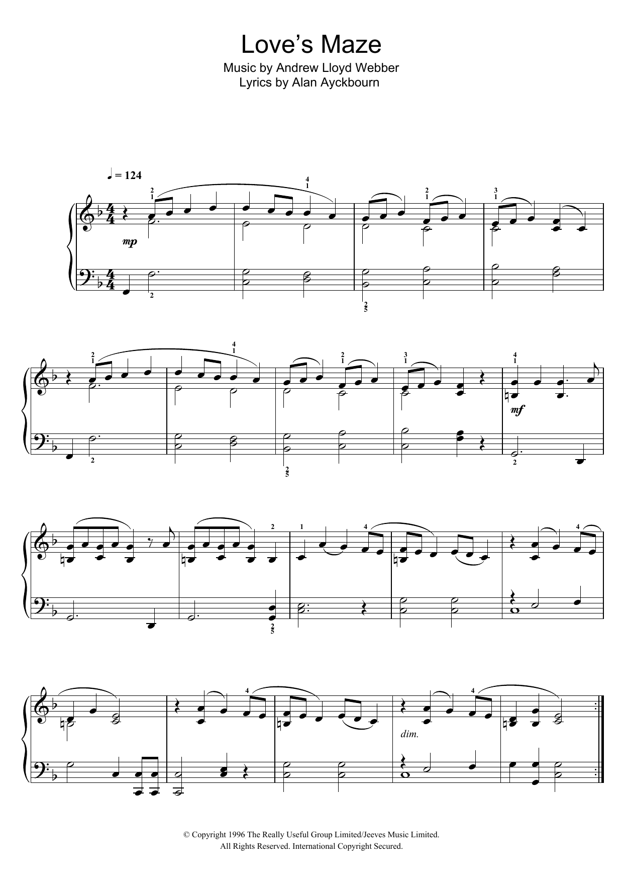 Download or print Andrew Lloyd Webber Love's Maze (from By Jeeves) sheet music, chords and digital score arranged for Easy Piano. This Musical/Show score includes 2 page(s).