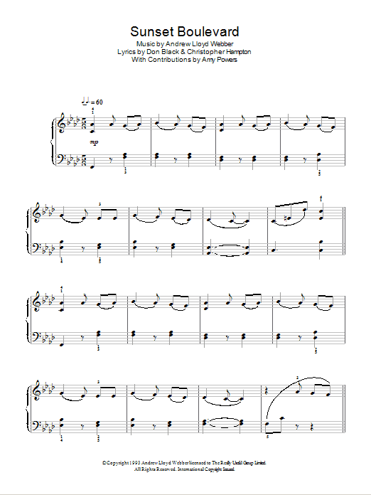 Download or print Andrew Lloyd Webber Sunset Boulevard sheet music, chords and digital score arranged for Easy Piano. This Musical/Show score includes 3 page(s).