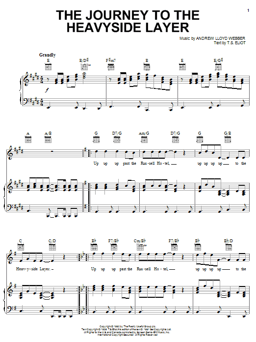 Download or print Andrew Lloyd Webber The Journey To The Heavyside Layer (from Cats) sheet music, chords and digital score arranged for Piano, Vocal & Guitar Chords (Right-Hand Melody). This Musical/Show score includes 2 page(s).