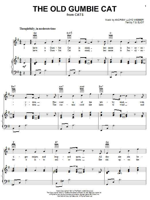 Quick facts The Old Gumbie Cat (from Cats) about digital sheet music