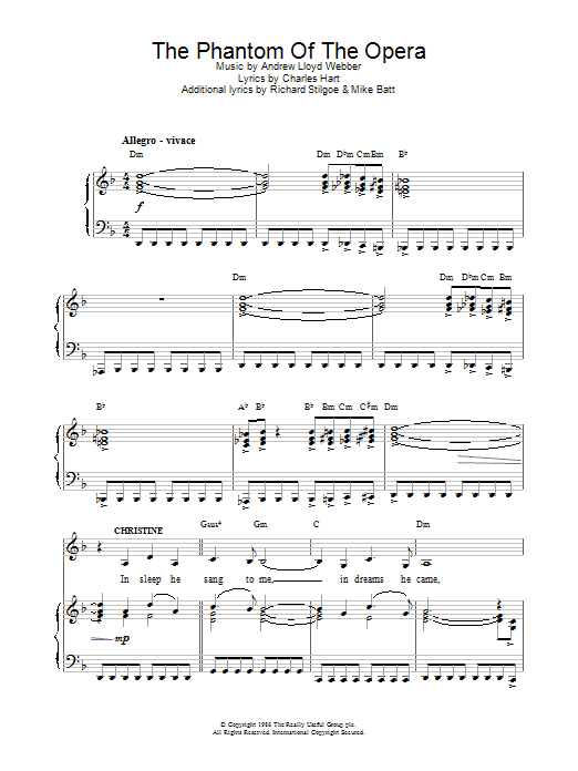 Download or print Andrew Lloyd Webber The Phantom Of The Opera sheet music, chords and digital score arranged for Lead Sheet / Fake Book. This Musical/Show score includes 2 page(s).