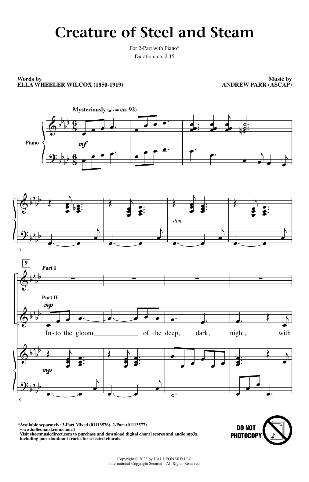 Download or print Andrew Parr Creature Of Steel And Steam sheet music, chords and digital score arranged for 2-Part Choir. This Concert score includes 10 page(s).