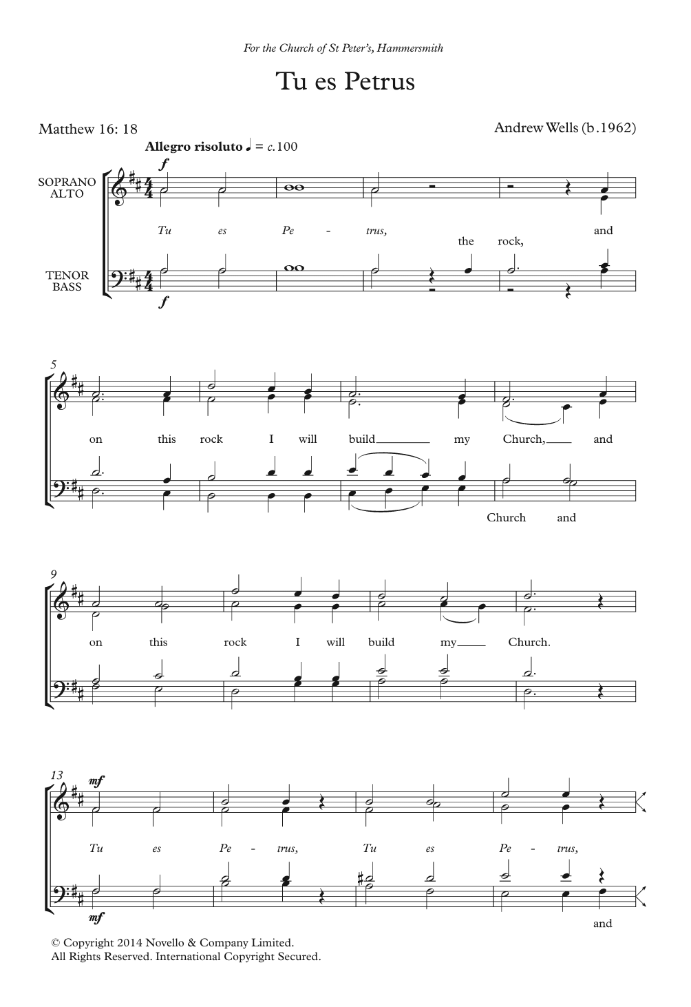 Download or print Andrew Wells Tu Es Petrus sheet music, chords and digital score arranged for Choir. This Classical score includes 2 page(s).