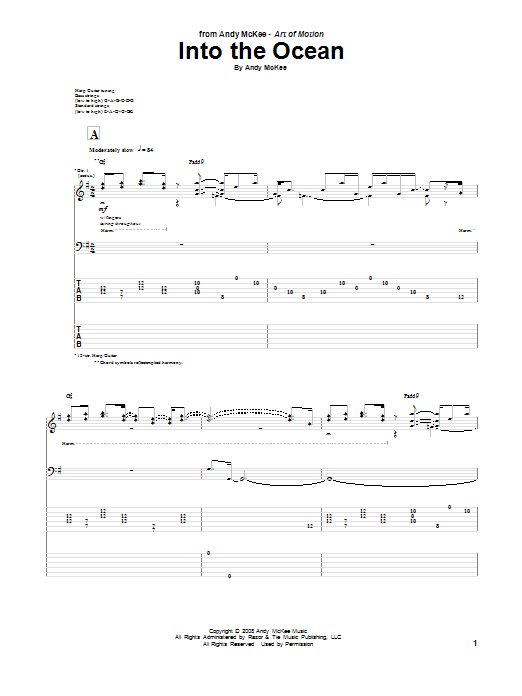 Download or print Andy McKee Into The Ocean sheet music, chords and digital score arranged for Guitar Tab. This Pop score includes 12 page(s).