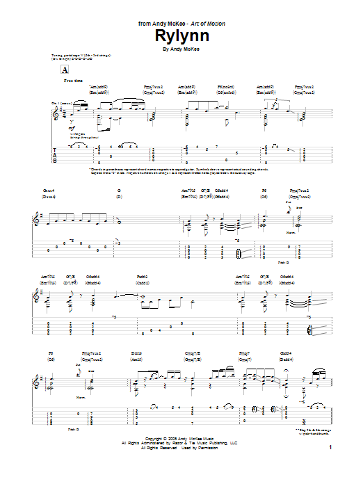 Download or print Andy McKee Rylynn sheet music, chords and digital score arranged for Guitar Tab. This Pop score includes 8 page(s).