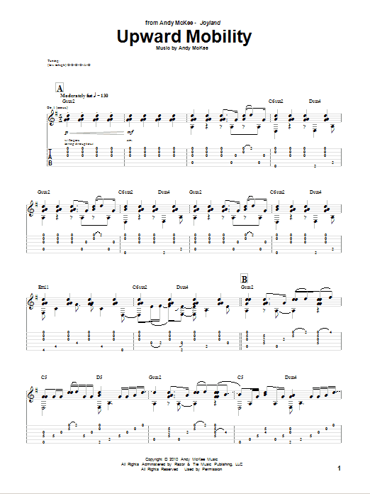 Download or print Andy McKee Upward Mobility sheet music, chords and digital score arranged for Guitar Tab. This Folk score includes 5 page(s).