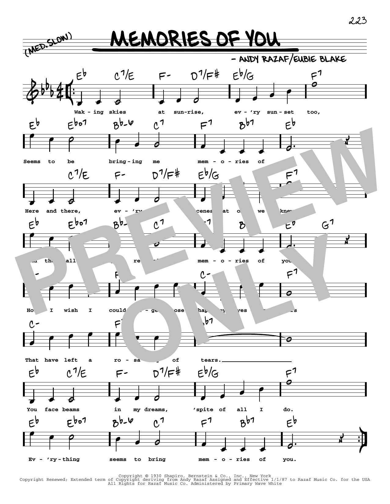 Download or print Andy Razaf Memories Of You (arr. Robert Rawlins) sheet music, chords and digital score arranged for Real Book – Melody, Lyrics & Chords. This Jazz score includes 1 page(s).