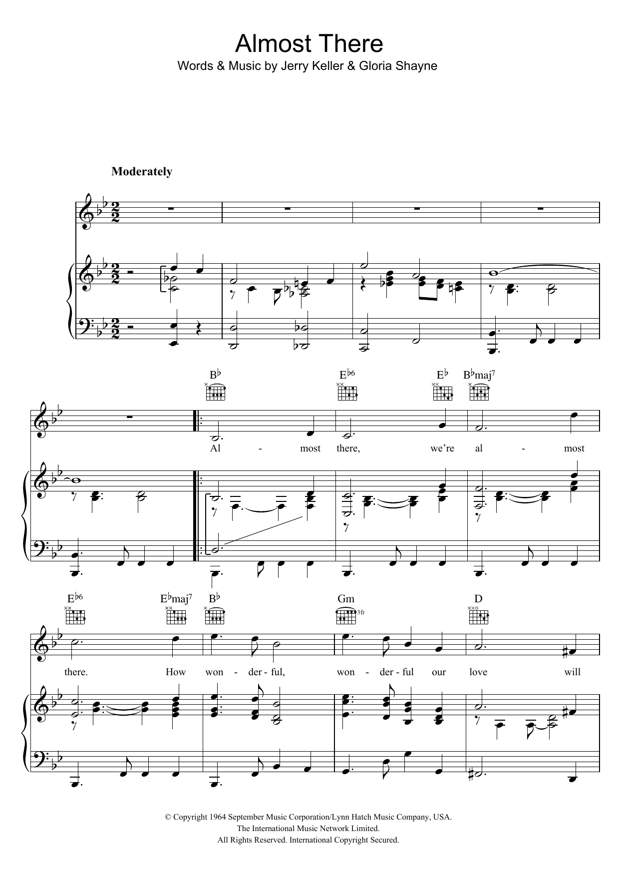 Download or print Andy Williams Almost There sheet music, chords and digital score arranged for Piano & Vocal. This Standards score includes 3 page(s).