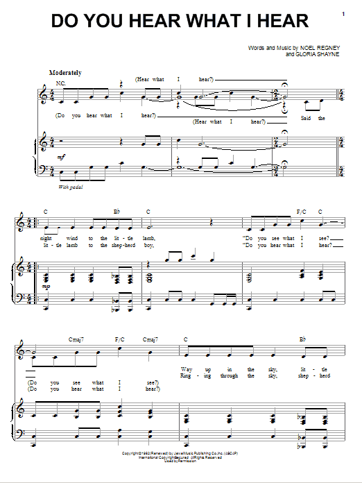 Download or print Andy Williams Do You Hear What I Hear sheet music, chords and digital score arranged for Piano & Vocal. This Children score includes 5 page(s).