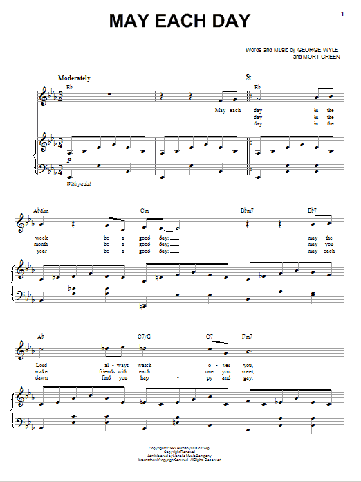 Download or print Andy Williams May Each Day sheet music, chords and digital score arranged for Piano & Vocal. This Pop score includes 4 page(s).