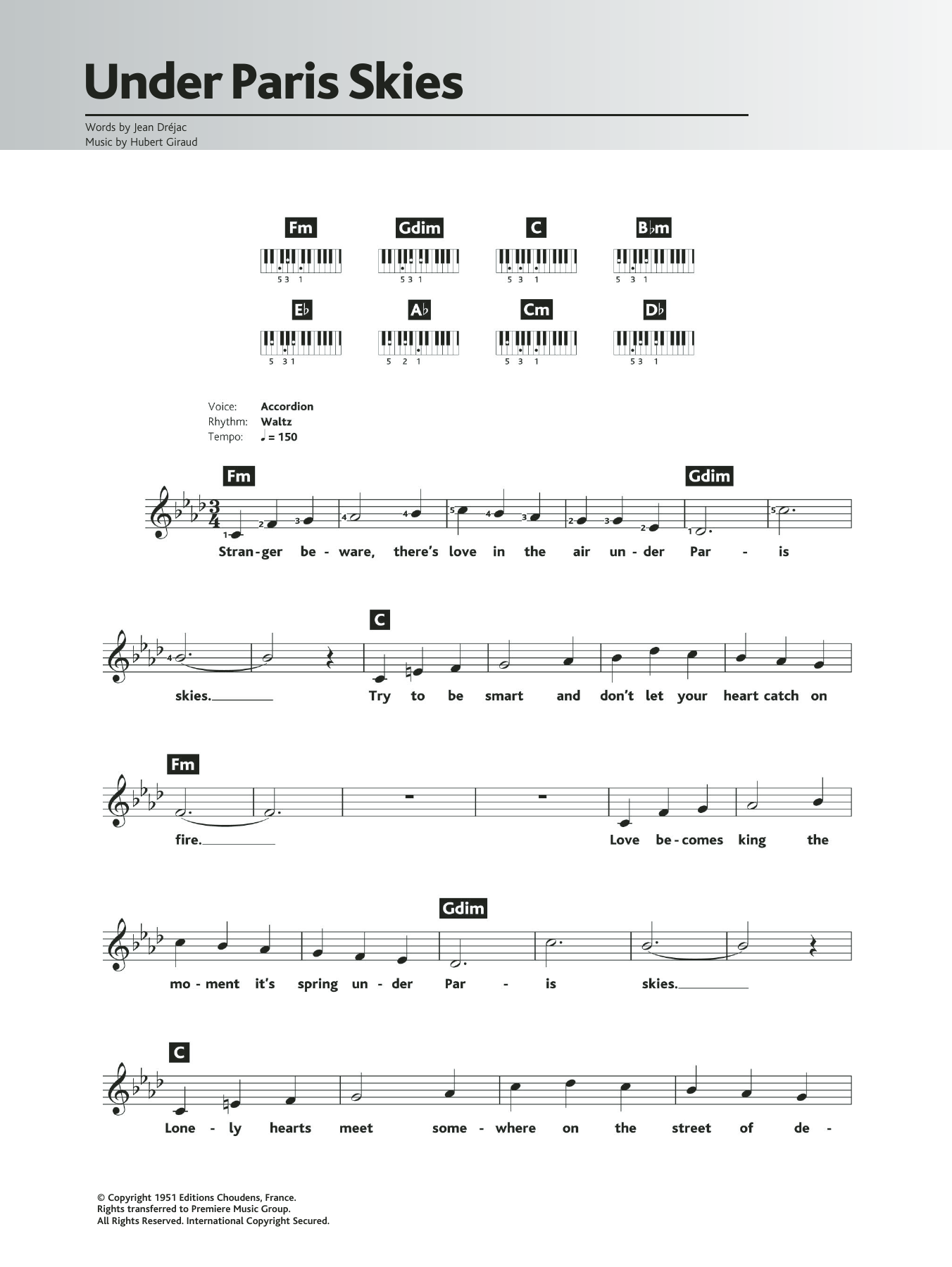 Quick facts Under Paris Skies (Sous Le Ciel De Paris) about digital sheet music