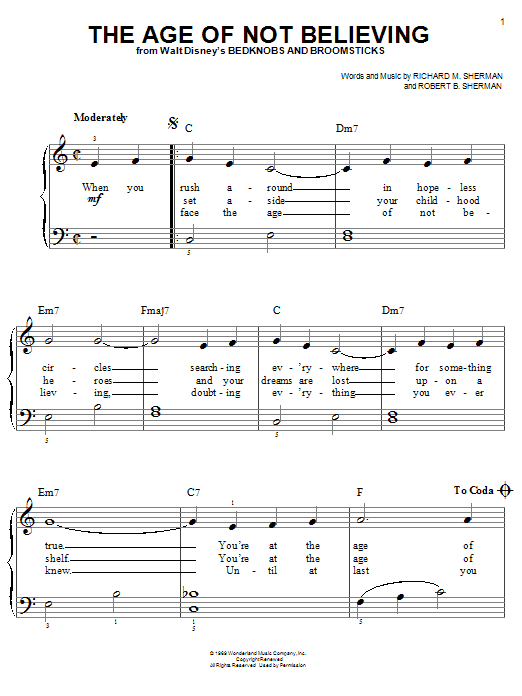 Download or print Angela Lansbury The Age Of Not Believing sheet music, chords and digital score arranged for Piano, Vocal & Guitar Chords (Right-Hand Melody). This Film/TV score includes 4 page(s).