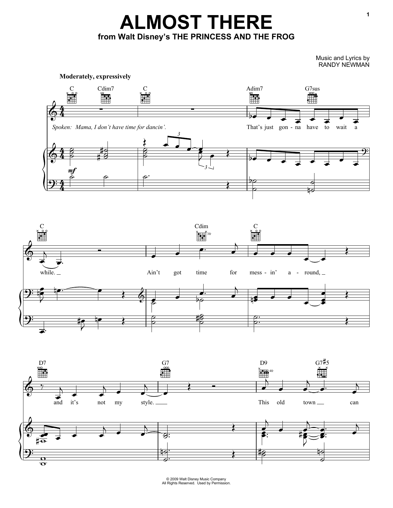 Download or print Anika Noni Rose Almost There (from The Princess and the Frog) sheet music, chords and digital score arranged for Piano, Vocal & Guitar Chords (Right-Hand Melody). This Disney score includes 8 page(s).