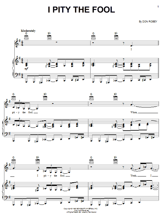 Download or print Ann Peebles I Pity The Fool sheet music, chords and digital score arranged for Piano, Vocal & Guitar Chords (Right-Hand Melody). This Pop score includes 7 page(s).