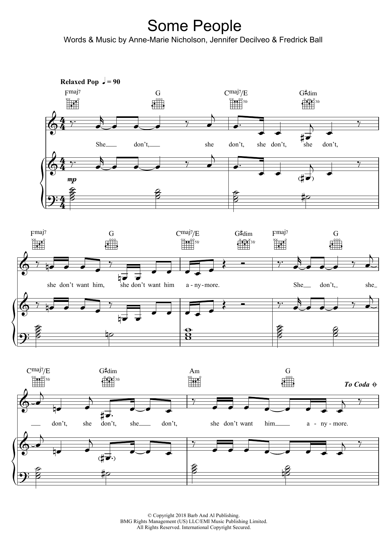 Download or print Anne-Marie Some People sheet music, chords and digital score arranged for Piano, Vocal & Guitar Chords. This Pop score includes 5 page(s).