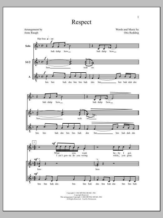 Download or print Anne Raugh Respect sheet music, chords and digital score arranged for SSA Choir. This Rock score includes 7 page(s).