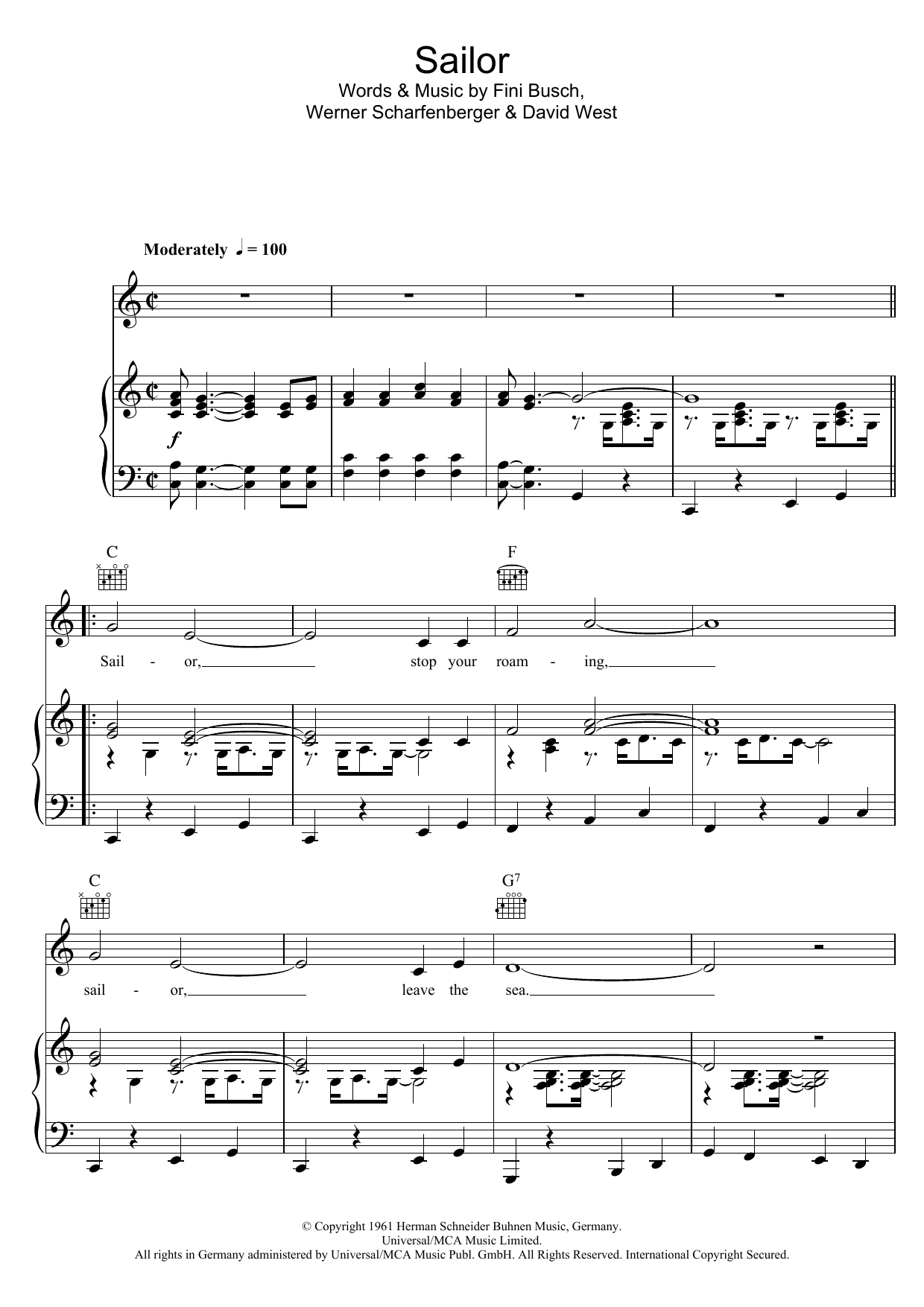 Download or print Anne Shelton Sailor sheet music, chords and digital score arranged for Piano, Vocal & Guitar Chords. This Standards score includes 3 page(s).