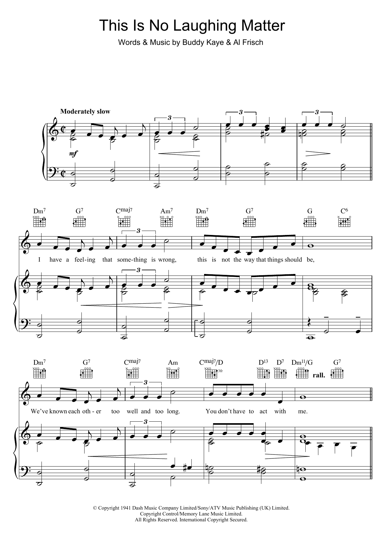 Download or print Anne Shelton This Is No Laughing Matter sheet music, chords and digital score arranged for Piano, Vocal & Guitar Chords. This Pop score includes 4 page(s).