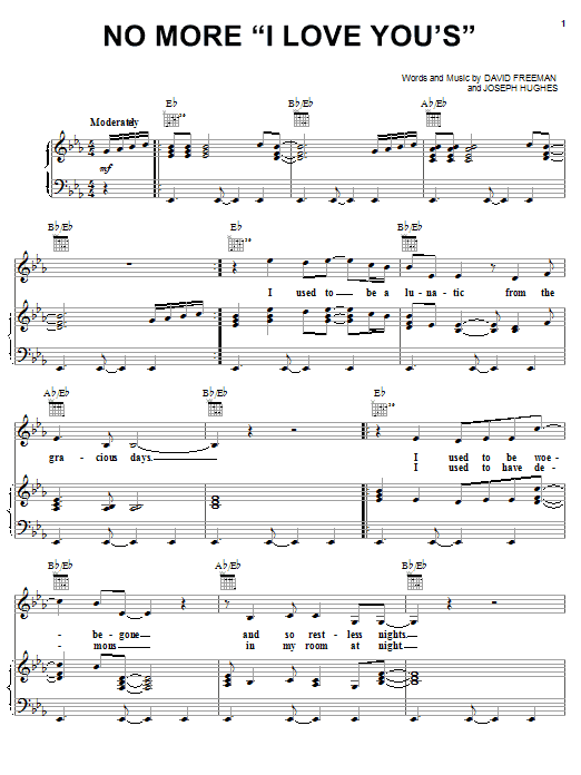 Download or print Annie Lennox No More "I Love You's" sheet music, chords and digital score arranged for Piano, Vocal & Guitar Chords (Right-Hand Melody). This Pop score includes 6 page(s).