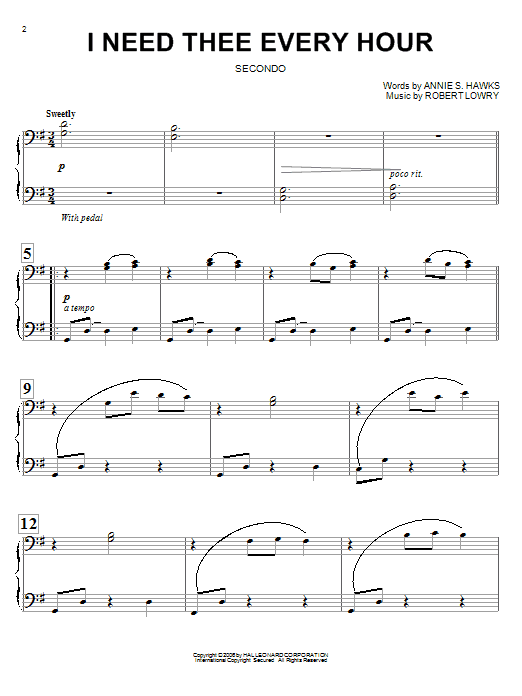 Download or print Annie S. Hawks I Need Thee Every Hour sheet music, chords and digital score arranged for Piano, Vocal & Guitar Chords (Right-Hand Melody). This Sacred score includes 2 page(s).