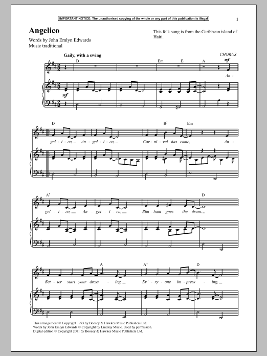 Download or print Anonymous Angelico sheet music, chords and digital score arranged for Piano & Vocal. This Traditional score includes 2 page(s).