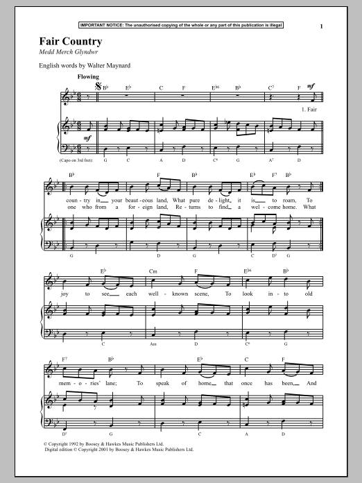 Download or print Anonymous Fair Country sheet music, chords and digital score arranged for Piano & Vocal. This Traditional score includes 2 page(s).