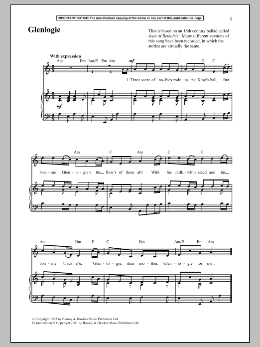 Download or print Anonymous Glenlogie sheet music, chords and digital score arranged for Piano & Vocal. This Traditional score includes 2 page(s).