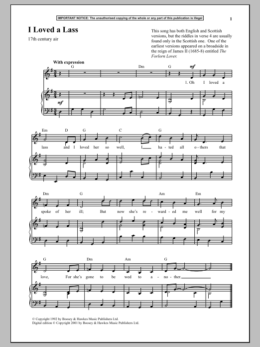 Download or print Anonymous I Loved A Lass sheet music, chords and digital score arranged for Piano & Vocal. This Traditional score includes 2 page(s).