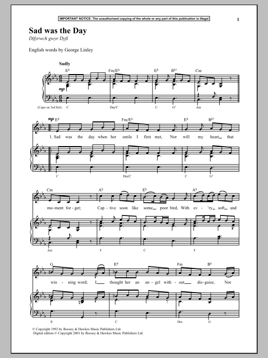 Download or print Anonymous Sad Was The Day sheet music, chords and digital score arranged for Piano & Vocal. This Traditional score includes 2 page(s).