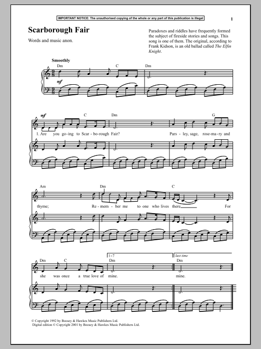 Quick facts Scarborough Fair about digital sheet music