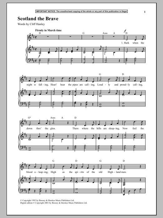 Download or print Anonymous Scotland The Brave sheet music, chords and digital score arranged for Piano & Vocal. This Traditional score includes 2 page(s).