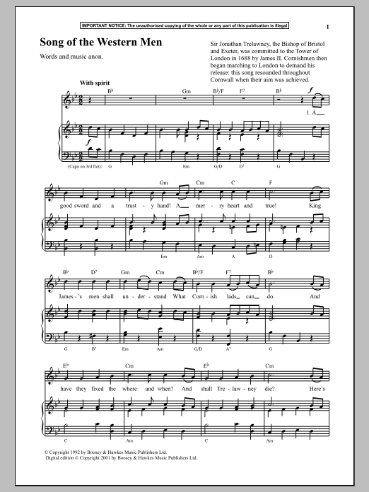 Download or print Anonymous Song Of The Western Men sheet music, chords and digital score arranged for Piano & Vocal. This Traditional score includes 2 page(s).