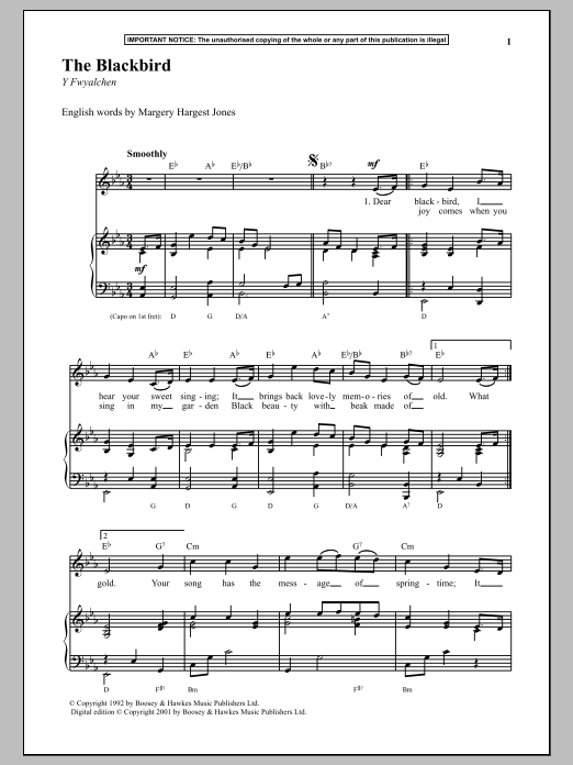 Download or print Anonymous The Blackbird sheet music, chords and digital score arranged for Piano & Vocal. This Traditional score includes 2 page(s).