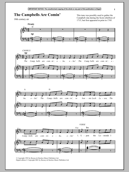 Download or print Anonymous The Campbells Are Comin sheet music, chords and digital score arranged for Piano & Vocal. This Traditional score includes 2 page(s).