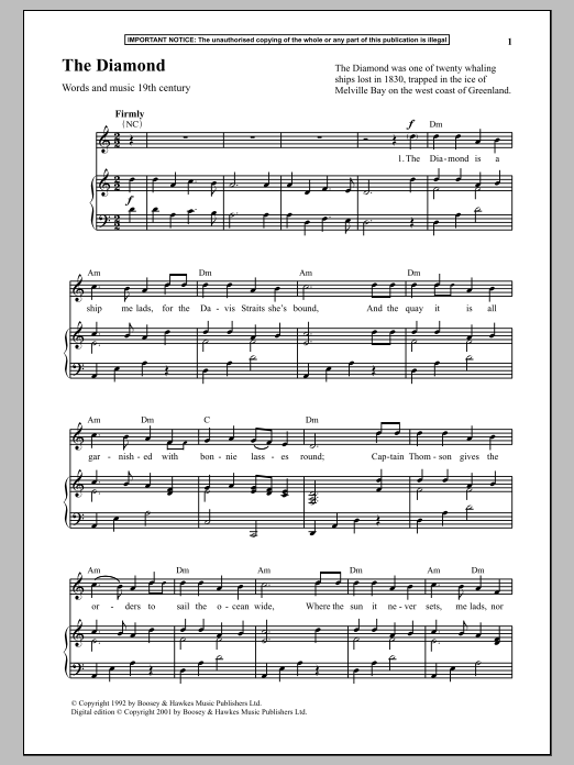 Download or print Anonymous The Diamond sheet music, chords and digital score arranged for Piano & Vocal. This Traditional score includes 2 page(s).