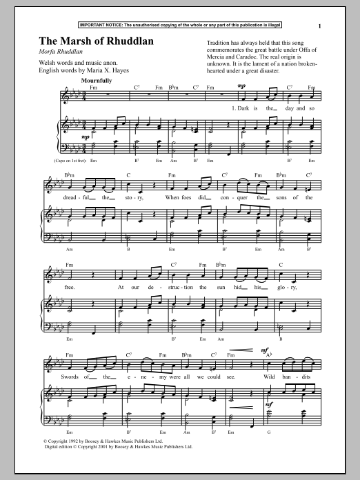 Download or print Anonymous The Marsh Of Rhuddlan sheet music, chords and digital score arranged for Piano & Vocal. This Traditional score includes 2 page(s).