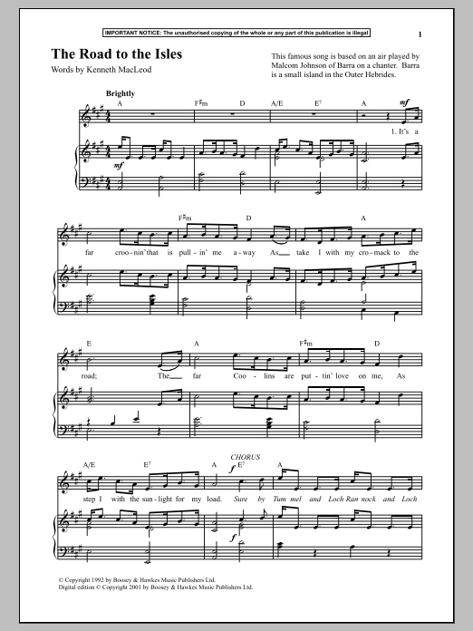Download or print Anonymous The Road To The Isles sheet music, chords and digital score arranged for Piano & Vocal. This Traditional score includes 2 page(s).